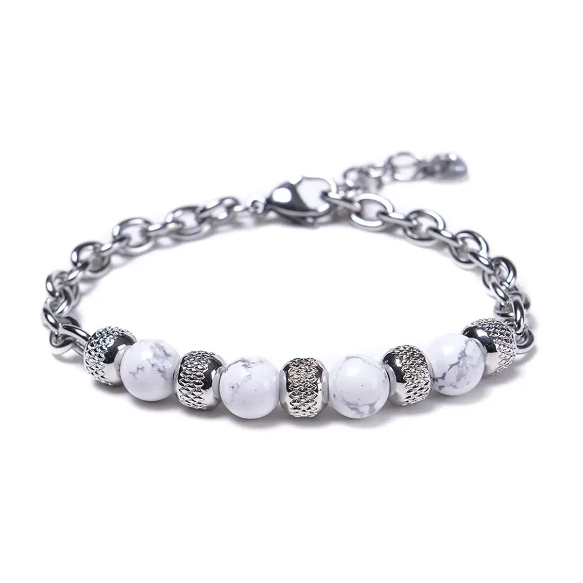 Dieses Armband ist ein echtes Must-have für einen modernen und maskulinen Look. Die Kombination aus Naturstein-Perlen und Edelstahl-Elementen sorgt für einen starken, stilvollen Auftritt.