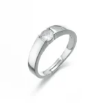Damenring aus Titanstahl mit klarem Zirkonia-Stein, polierter Oberfläche und geometrischem Design.